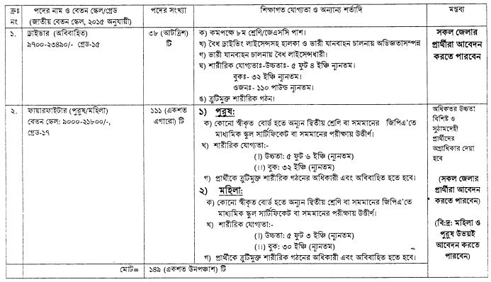 ফায়ার সার্ভিস ও সিভিল ডিফেন্সে চাকরি, নিয়োগ ১৪৯
