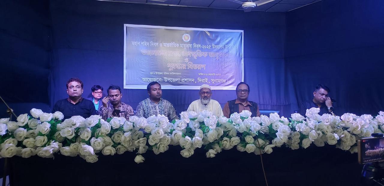 ভাষা শহিদদের প্রতি গভীর শ্রদ্ধা নিবেদনের অংশ হিসেবে দিরাই উপজেলা প্রশাসনের উদ্যোগে মহান শহিদ দিবস ও আন্তর্জাতিক মাতৃভাষা দিবস-২০২৫ যথাযোগ্য
