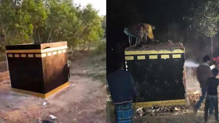 কাবা শরীফের আদলে নির্মিত ঘর ভাঙল ছাত্র-জনতা