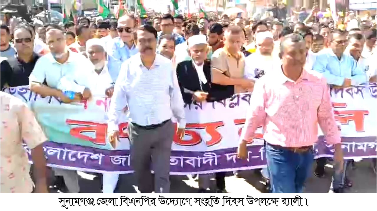 জাতীয় বিপ্লব ও সংহতি দিবস উপলক্ষে সুনামগঞ্জে বণ্যার্ঢ্য র্যালি অনুষ্ঠিত হয়েছে। বৃহস্পতিবার দুপুরে সুনামগঞ্জ জেলা বিএনপির উদ্যোগে শহরের পুরাতন বাস-স্টেশন