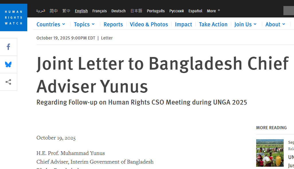 আ.লীগের কার্যক্রমে নিষেধাজ্ঞা প্রত্যাহার চেয়ে প্রধান উপদেষ্টাকে ৬ আন্তর্জাতিক সংগঠনের চিঠি