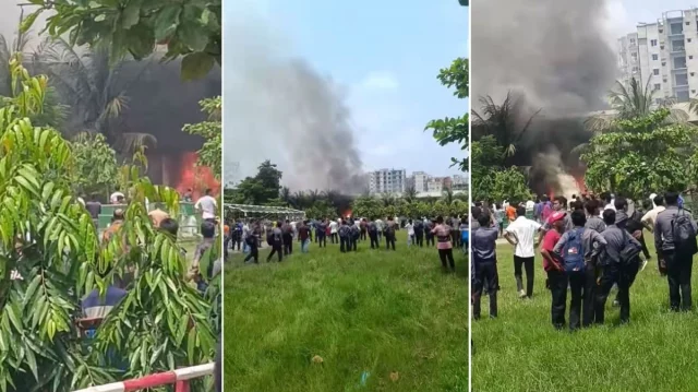 রাজধানীর উত্তরার দিয়াবাড়িতে বাংলাদেশ বিমানবাহিনীর একটি প্রশিক্ষণ বিমান (এফ-৭ বিজিআই) বিধ্বস্ত হয়ে মাইলস্টোন স্কুল অ্যান্ড কলেজের একটি ভবনে আগুন ধরে