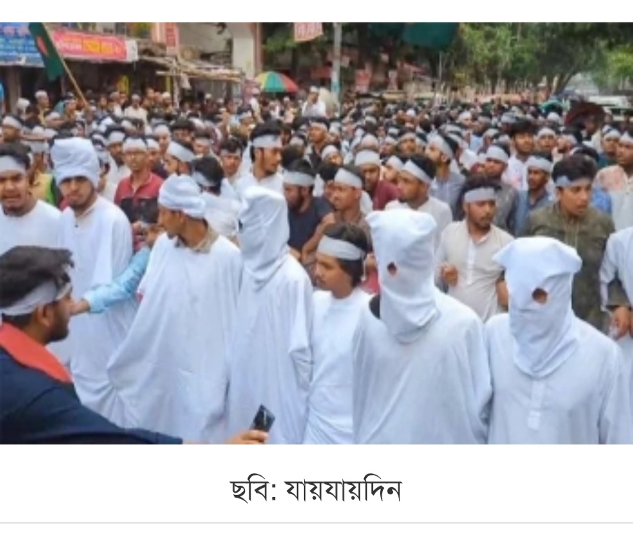 কাফনের কাপড় মাথায় বেঁধে পলিটেকনিক শিক্ষার্থীদের মিছিল