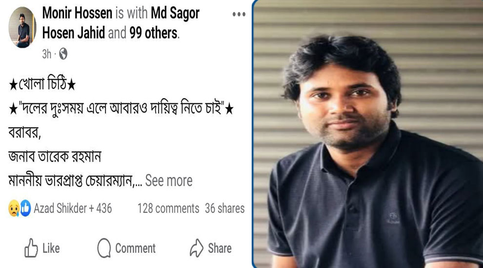 শাবিপ্রবি ছাত্রদলের নতুন কমিটিতে পদবঞ্চিত নেতা মনির হোসেনের খোলা চিঠি