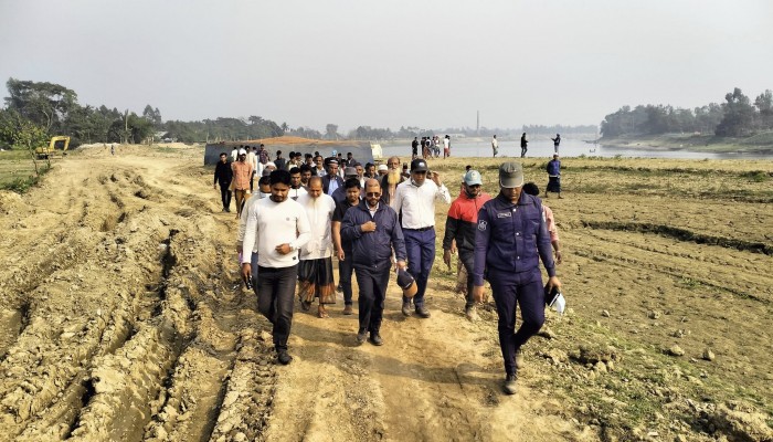 শাল্লায় বাঁধের কাজ পরিদর্শনে জেলা প্রশাসক