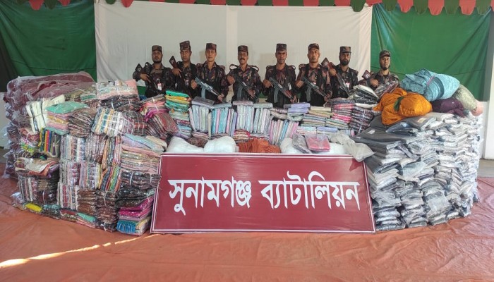 সুনামগঞ্জে দেড়কোটি টাকার ভারতীয় অবৈধ পণ্য জব্দ