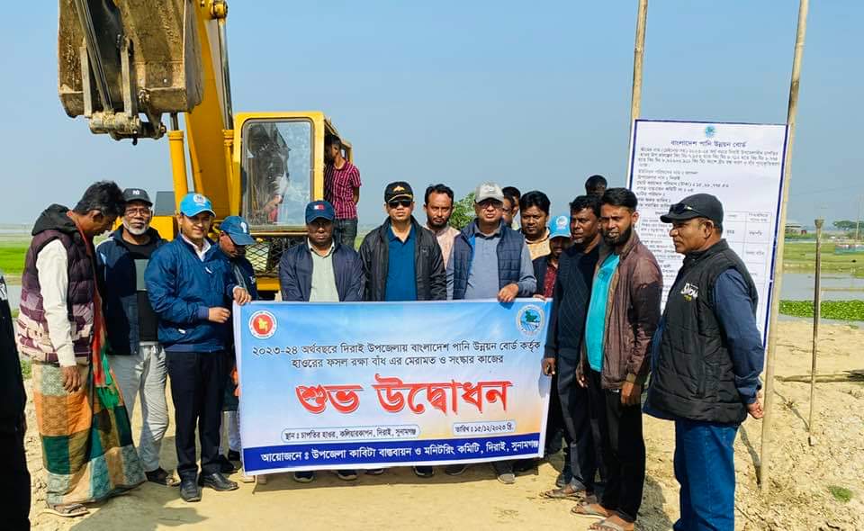দিরাইয়ে ২০২৩-২৪ অর্থ বছরে বাংলাদেশ পানি উন্নয়ন বোর্ডের আওতাধীন উপজেলার বিভিন্ন হাওর রক্ষা বাঁধের ভাঙ্গন বন্ধ ও মেরামত করণে পিআইসি