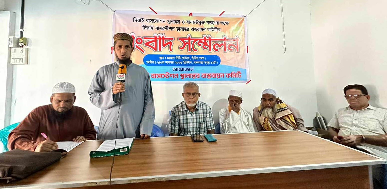 দিরাই বাসস্টেশনকে যানজটমুক্ত করণ ও স্থানান্তরের দাবিতে সংবাদ সম্মেলন অনুষ্ঠিত হয়েছে। মঙ্গলবার (২৮ নভেম্বর) দুপুরে দিরাই থানা পয়েন্টের জালাল সিটি