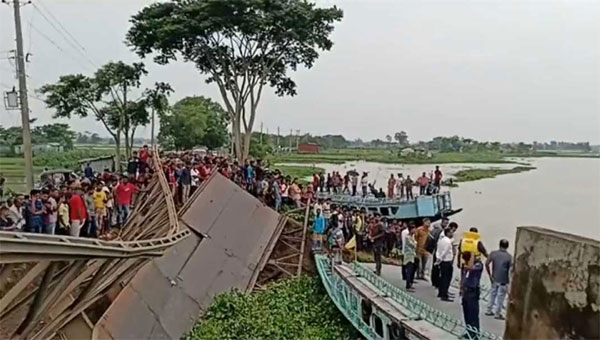 জগন্নাথপুরে বেইলি ব্রিজ ভেঙে নদীতে ট্রাক