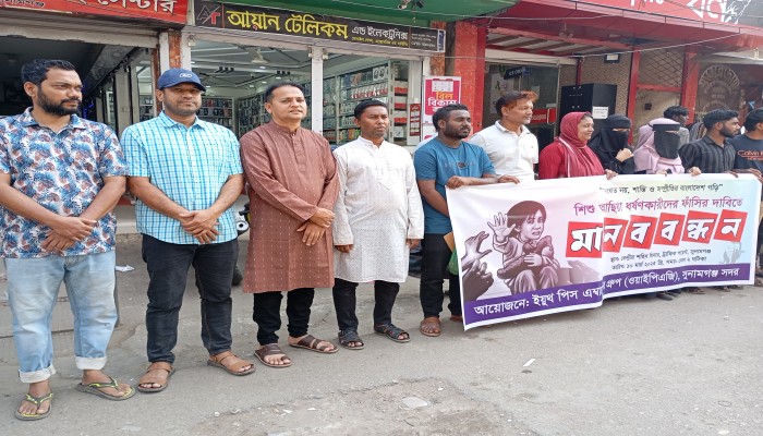 ধর্ষকদের ফাঁসির দাবিতে সুনামগঞ্জে মানববন্ধন