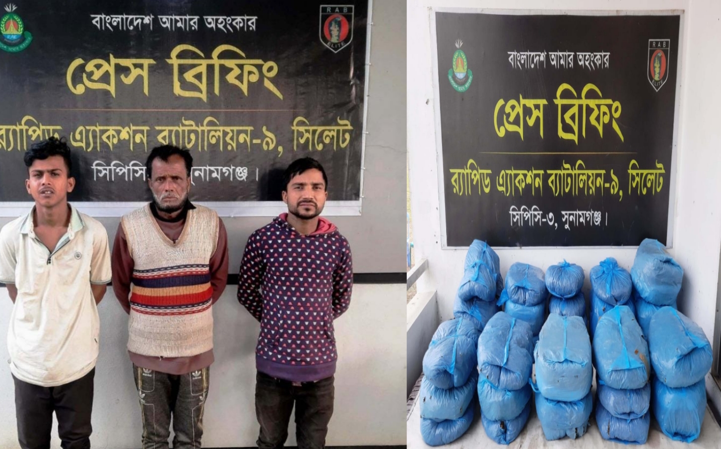 দিরাইয়ে র্যাবের অভিযানে ৩৯ কেজি গাঁজাসহ গ্রেফতার ৩