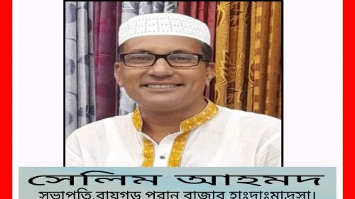 রায়গড় পুরান বাজার হাঃ দাঃ মাদ্রাসার ম্যানেজিং কমিটির সভাপতি সেলিম আহমদ পূর্নরায় নির্বচিত