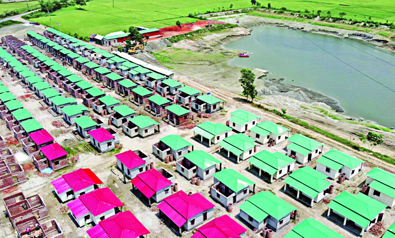 সকাল থেকে দুপুর পর্যন্ত সরেজমিনে ঘুরে দেখা যায়, বেশ দ্রুতগতিতে এগিয়ে চলছে প্রকল্পের কাজ। ৩০০ শ্রমিক কাজে ব্যস্ত। তাঁদের কেউ রড কাটছেন, কেউ বা বাঁধছেন, কেউ টিনের চালা লাগানোয় ব্যস্ত, কেউ বা দেয়ালে পলেস্তারার কাজ করছেন, কেউ ঘরের দেয়ালে পানি দিচ্ছেন। তীব্র রোদ উপেক্ষা করেই চলছে এ কর্মযজ্ঞ।