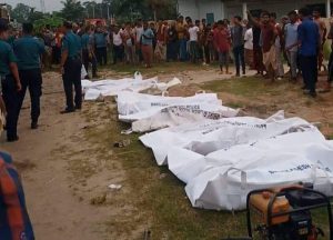ঘটনায় নিহত ১৪ জন হলেন- সুনামগঞ্জের দিরাই উপজেলার ভাটিপাড়া গ্রামের মৃত সজিব আলীর ছেলে রশিদ মিয়া (৫০), শান্তিগঞ্জ উপজেলার মুরাদপুর গ্রামের মৃত হারুন মিয়ার ছেলে দুলাল মিয়া (২৫), একই উপজেলার বাবনগাঁ গ্রামের মৃত ওয়াহাব আলীর ছেলে শাহিন মিয়া (৪০), দিরাই উপজেলার আলীনগর গ্রামের মৃত শিশু মিয়ার ছেলে হারিছ মিয়া (৬৫), হবিগঞ্জের চুনারুঘাট উপজেলার হলদিউড়া গ্রামের আব্দুর রহিমের স্ত্রী আমিনা বেগম (৪৫), সুনামগঞ্জের দিরাই উপজেলার ভাটিপাড়া গ্রামের মৃত মফিজ মিয়ার ছেলে সায়েদ নূর (৫০), শান্তিগঞ্জ উপজেলার তলেরতন গ্রামের মৃত আওলাদ উল্লার ছেলে আওলাদ হোসেন (৬০), দিরাই উপজেলার পাথারিয়া গ্রামের মৃত ছলিম উদ্দিনের ছেলে একলিম মিয়া (৫৫), গচিয়া গ্রামের বারিক উল্লার ছেলে সিজিল মিয়া (৫৫), ভাটিপাড়া গ্রামের সিরাজ মিয়ার ছেলে সৌরভ মিয়া (২৭), নেত্রকোনার ভারহাট্টা উপজেলার দশদার গ্রামের ইসলাম উদ্দিনের ছেলে আওলাদ মিয়া (৩০), সুনামগঞ্জের দিরাই উপজেলার ভাটিপাড়া গ্রামের শমসের নুরের মেয়ে মেহের (২৪), দিরাই উপজেলার মধুপুর গ্রামের সোনা মিয়ার ছেলে দুদু মিয়া (৪০), একই গ্রামের শাহজাহানের ছেলে বাদশা (২২) সহ ১৪ জন।